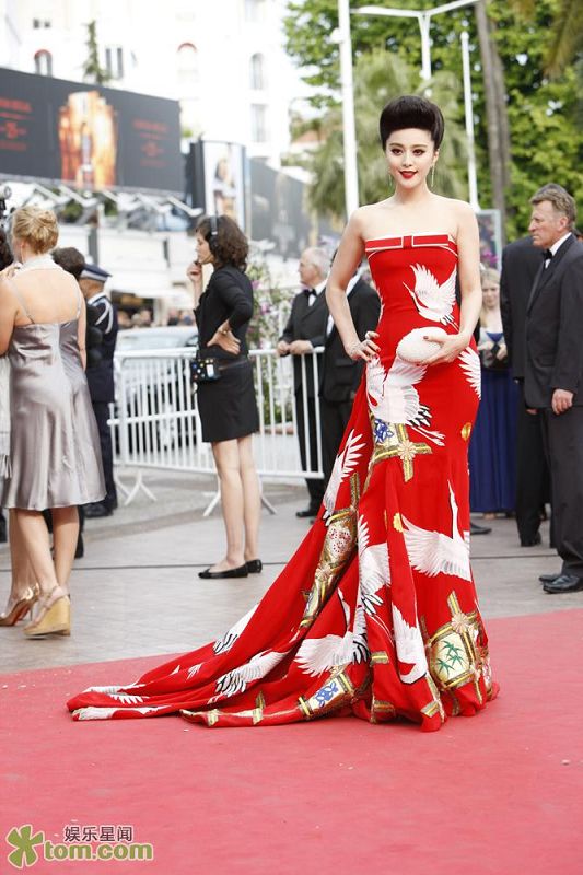 北京時(shí)間5月11日深夜,第64屆戛納國際電影節(jié)隆重開幕。今年的戛納紅毯明星云集,安東尼奧·班德拉斯、庫斯圖里卡、昆汀·塔倫蒂諾、費(fèi)·唐諾薇、瑞切爾·麥克亞當(dāng)斯、烏瑪·瑟曼等明星讓紅毯星光熠熠。中國明星出現(xiàn)的頻率也頗高。除了評(píng)委施南生和杜琪峰外,本屆戛納出現(xiàn)在開幕式紅毯上的中國女明星共有三位:鞏俐、范冰冰、袁莉。按照國際影響力大小,原本該是鞏俐排第一,但意外的是,今年戛納官方直播時(shí),卻選擇了把最多的鏡頭給予范冰冰。范冰冰當(dāng)天穿了一身紅色的仙鶴裝。仙鶴裝以中國紅為底色,上繡九只形態(tài)各異的仙鶴,中間還點(diǎn)綴著梅蘭竹菊。據(jù)范冰冰的宣傳總監(jiān)楊小姐介紹,選擇這件衣服是因?yàn)?span lang="EN-US">“海為龍世界,云是鶴家鄉(xiāng)”,這是繼去年的龍袍后,范冰冰再次選擇中國元素禮服來展現(xiàn)東方美。記者還了解到,其實(shí)除了這件仙鶴裝,范冰冰原本還有一套西式晚裝供選擇。在中規(guī)中矩的西式晚裝和中國風(fēng)情的仙鶴裝中,范冰冰一度擔(dān)心這套仙鶴裝過于夸張,但在最后決斷時(shí),她還是憑本能選擇了夸張的這套。