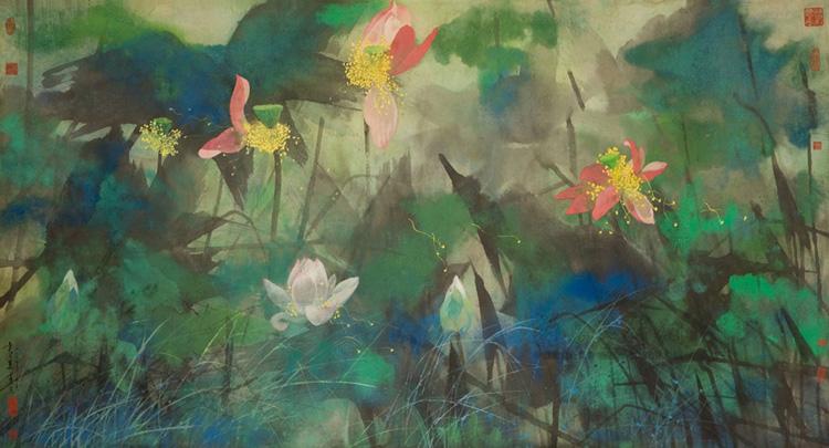為了展現(xiàn)中華名族的蘇繡文化,蘇繡的作品開始進入國家政治場所,在人民大會堂有蘇繡的作品,蘇繡也不僅一次的作為外交禮品贈與國外元首。隨著香港回歸祖國,外交部駐港機構也需要裝飾布置。為了體現(xiàn)我國的優(yōu)秀傳統(tǒng)文化,有關部門決定采用四大名繡之一的蘇繡作為該機構貴賓室內的陳設品。選用的畫稿是由中央工藝美術學院教授袁運甫設計的《彩墨荷塘》,這幅畫采用虛實亂針繡和平針中各種針法相結合的多種針法,既見粗獷筆墨,又有細致刻畫,精心繡制成雙面異色亂針繡《彩墨荷塘》,高1.1米。寬2.3米。原作以大膽老辣的中國傳統(tǒng)潑墨和西洋絢麗濃艷的色彩,描繪了一副生機黯然的荷塘景色,繡工使用了五百多種色線,真實地反映了原作的精髓,既強調了光色效果,又很好地處理了虛實搭配。繡面上粉紅色、白色的荷花亭亭玉立,金黃色花蕊中幾支嫩綠色的蓮蓬清香遠溢,碧綠的田田荷葉在深藍底色的烘托下色彩交相滲透,枝干、細草、慈姑葉有的掩映在荷葉中,有的錯落有致地呈現(xiàn)在荷葉叢間,富有生氣地展示了仲夏荷塘的清麗之美。這還是至今最大的雙面繡亂針作品。