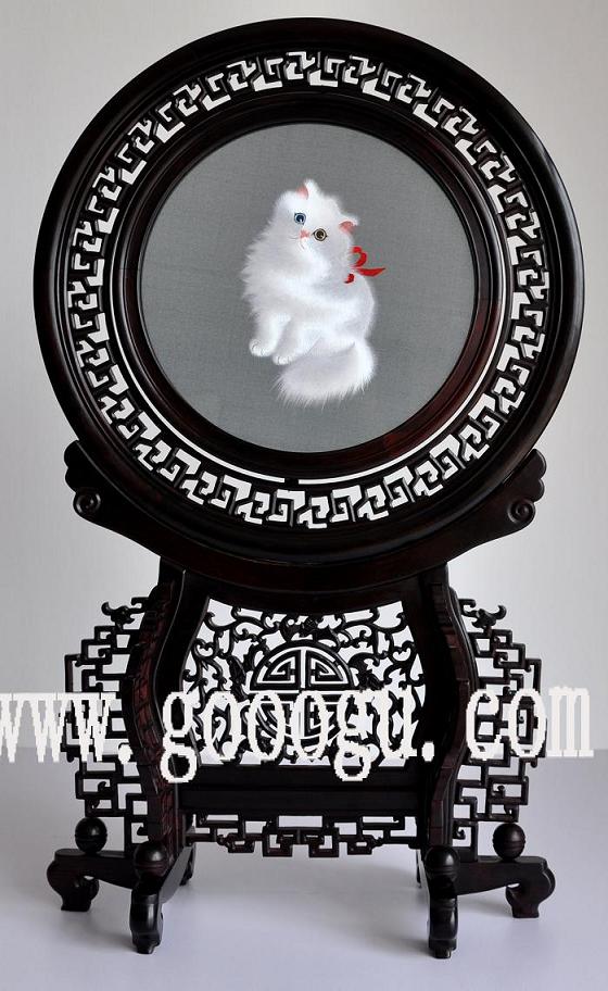 目前市場最常見的是國畫人物、山水等機(jī)繡作品,即用縫紉機(jī)來繡,所用材料不是蠶絲。機(jī)繡的手感硬,線條粗,色彩沒有明暗、虛實(shí)和漸變。因?yàn)槎际桥炕a(chǎn),電腦操作,一個(gè)工廠一天可以出幾百幅作品,所以連工藝品都算不上,只能叫工業(yè)品。有心收藏的,拿一幅機(jī)繡和一幅手工精品對比,立馬就能看出其中的區(qū)別。同樣大小面積,機(jī)繡的要比手工的重一兩倍,如果機(jī)繡的要100元,那么高級的手工蘇繡就要幾萬元了。