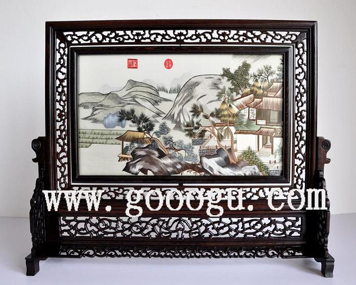風景雙面臺屏唐寅山水雙面繡外資企業(yè)采購團購特色好繡品