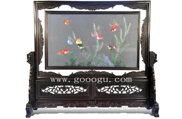 嬌古蘇繡木質(zhì)屏風(fēng) 玄關(guān)雙面繡 簡(jiǎn)易大方 十二紅魚圖特色中國(guó)風(fēng)