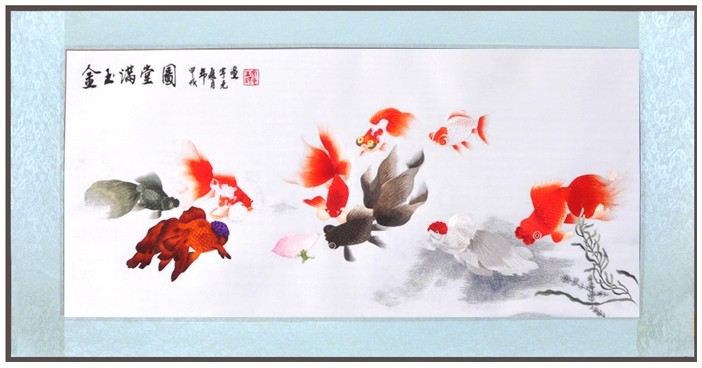 蘇繡禮品 手工刺繡 商務(wù)禮品外賓 金玉滿堂 金魚