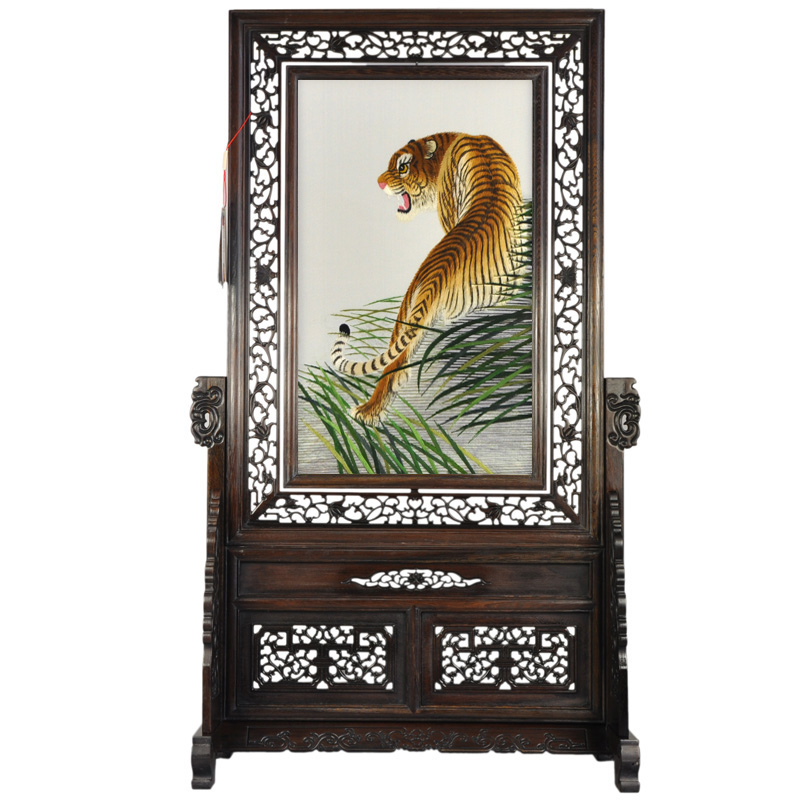蘇繡上山虎手工刺繡成品古典藝術(shù)擺件蘇州特色禮品