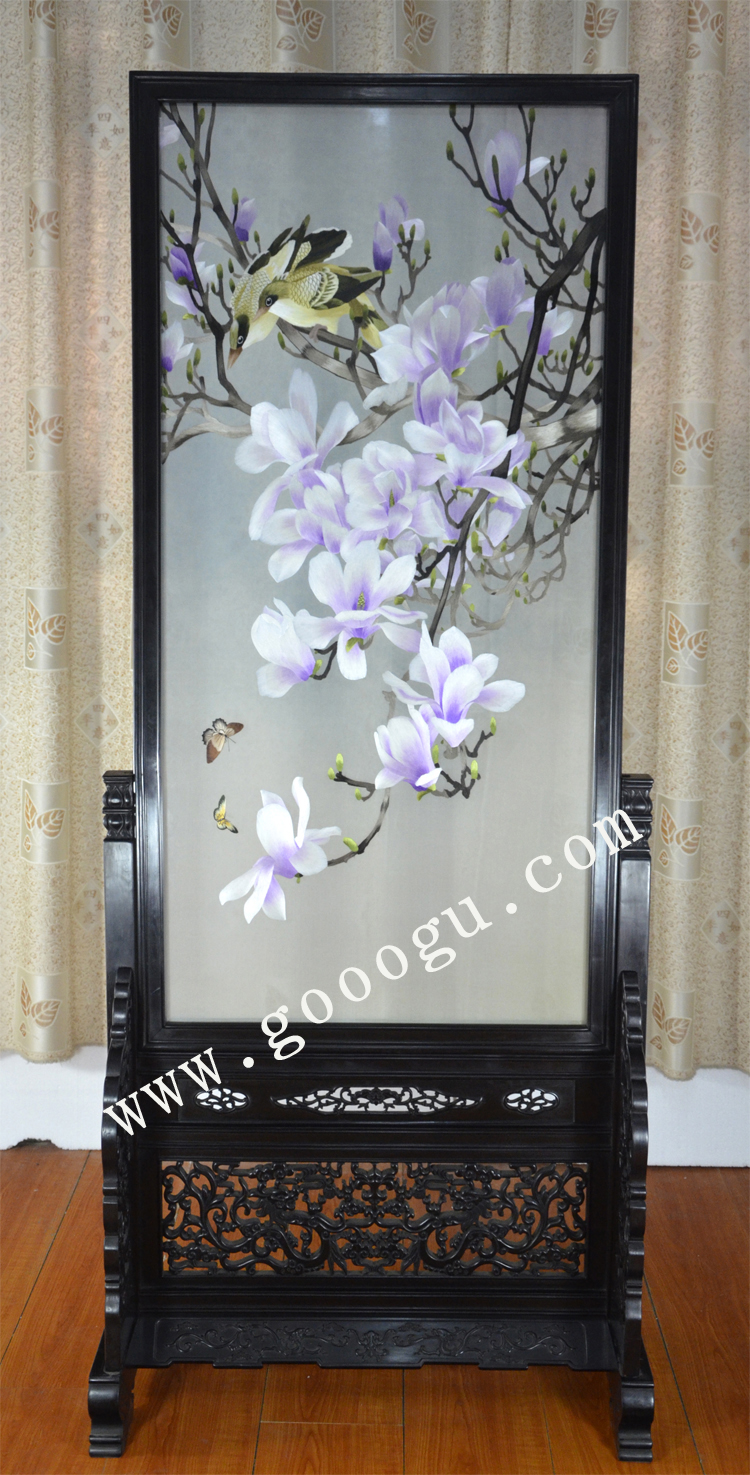 蘇繡工藝品裝飾 手工刺繡 玉蘭花鳥 紫檀木玄關(guān)