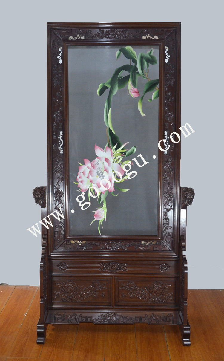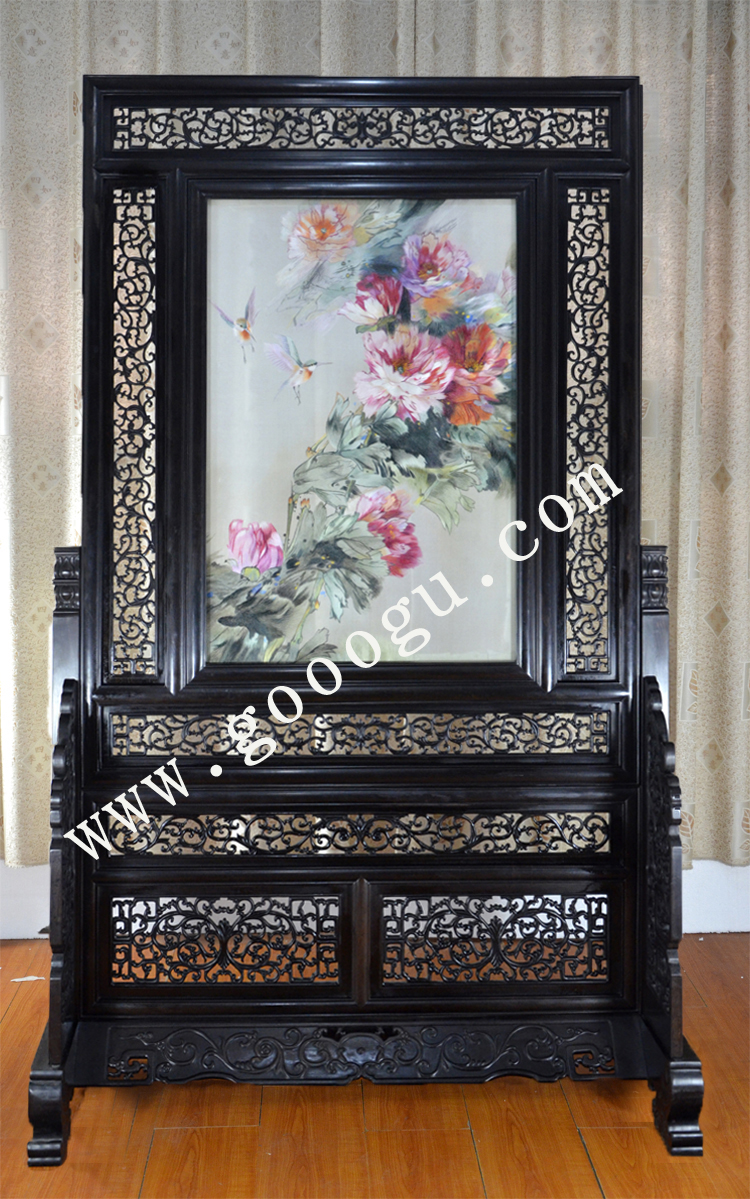 大型玄關(guān)屏風 紫檀木框架 蘇繡純手工 陳志才花鳥
