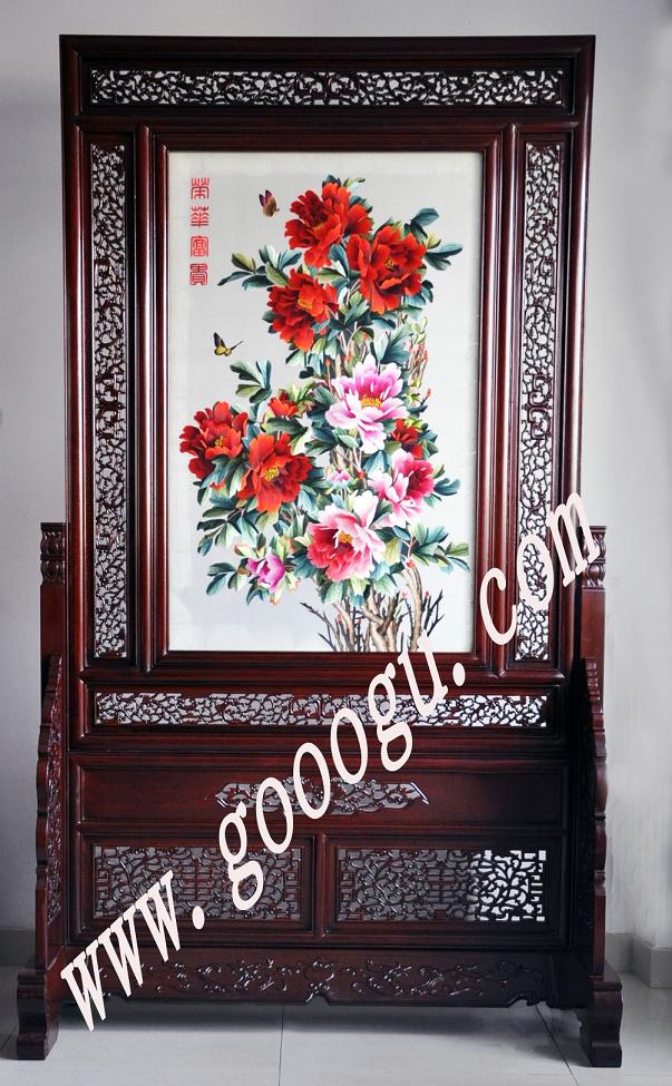 蘇繡牡丹玄關(guān) 家用屏風(fēng) 純手工刺繡 紫檀木工藝品