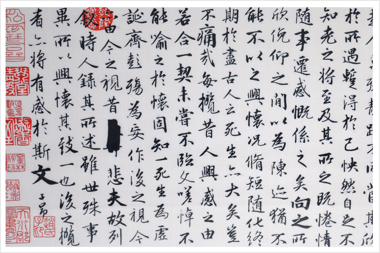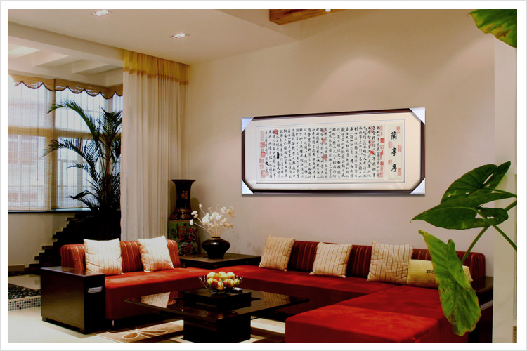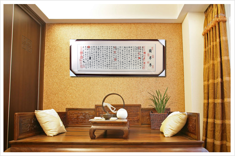 【品 牌】:嬌古 (作品代碼 D-1042) 【品 名】:蘭亭序裝飾畫(手工蘇繡) 【品 質(zhì)】:2-4絲刺繡 (蘇繡小知識:1根蘇繡絲線可分為16絲,中檔刺繡皆為10絲所繡,中高檔刺繡皆為6-8絲,高檔刺繡皆為4-6絲,精品刺繡皆為1-4絲) 【尺 寸】:畫心尺寸44*117cm 整體尺寸60*147cm 【產(chǎn)品工藝】:手工刺繡+真絲底料 【絲線材質(zhì)】:蠶絲線 【用 途】:家居裝飾及政府禮品、外賓禮品、生日禮物、賀壽禮品、領(lǐng)導(dǎo)升遷、出國禮品等等。 【出廠價(jià)格】:12000元 【作品介紹】:東晉穆帝(司馬聃)永和九年(公元353年)三月初三日,王羲之和當(dāng)時(shí)名士孫綽、謝安和釋支遁等四十一人,為禊事活動,在蘭亭宴集。與會的人士都有詩作,事后把這些詩篇匯編成集,《蘭亭集序》就是王羲之為這個(gè)詩集所寫的序言。序,文體名,是對書籍和文章舉其綱要、論其大旨的一種文字,相當(dāng)于引言。 《蘭亭集序》文字燦爛,字字珠璣,是一篇膾炙人口的優(yōu)美散文,它打破成規(guī),自辟徑蹊,不落窠臼,雋妙雅逸,不論繪景抒情,還是評史述志,都令人耳目一新。雖然前后心態(tài)矛盾,但總體看,還是積極向上的,特別是在當(dāng)時(shí)談玄成風(fēng)的東晉時(shí)代氣氛中,提出一死生為虛誕,齊彭殤為妄作,尤為可貴?!短m亭集序[1]》的更大成就在于它的書法藝術(shù)。通篇?dú)庀⒌涂侦`、瀟灑自然;用筆遒媚飄逸;手法既平和又奇崛,大小參差 ,既有精心安排藝術(shù)匠心,又沒有做作雕琢的痕跡,自然天成。其中,凡是相同的字, 寫法各不相同,各有變化,特別是字,達(dá)到了藝術(shù)上多樣與統(tǒng)一的效果。《蘭亭集序》是王羲之書法藝術(shù)的代表作,是中國書法藝術(shù) 史上的一座高峰,它滋養(yǎng)了一代又一代書法家。 在結(jié)構(gòu)和章法上以情感為線索,敘中有情,以情說理。第一段在清麗的境界中,著重寫樂字,由樂而轉(zhuǎn)入沉思,引出第二段的痛字,在經(jīng)過一番痛苦的思考后,不覺感到無限的悲哀,最后以一悲字作結(jié)。情感色彩迥乎不同,前后過渡卻妥帖自然。 細(xì)節(jié)圖