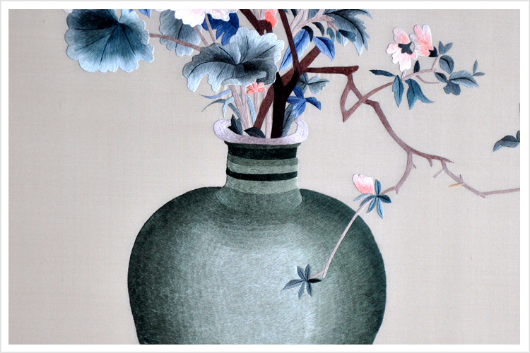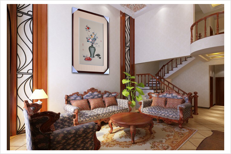 【品 牌】:嬌古 (作品代碼 D-1034) 【品 名】:郎世寧《午瑞圖》裝飾畫(huà)(手工蘇繡) 【品 質(zhì)】:1-2絲刺繡 (蘇繡小知識(shí):1根蘇繡絲線可分為16絲,中檔刺繡皆為10絲所繡,中高檔刺繡皆為6-8絲,高檔刺繡皆為4-6絲,精品刺繡皆為1-4絲) 【尺 寸】:畫(huà)心尺寸50*80cm 整體尺寸75*110cm 【產(chǎn)品工藝】:手工刺繡+真絲底料 【絲線材質(zhì)】:蠶絲線 【用 途】:居家裝飾及政府禮品、外賓禮品、生日禮物、賀壽禮品、領(lǐng)導(dǎo)升遷、出國(guó)禮品等等。 【出廠價(jià)格】:7500元 【細(xì)節(jié)圖欣賞】 .jpg)