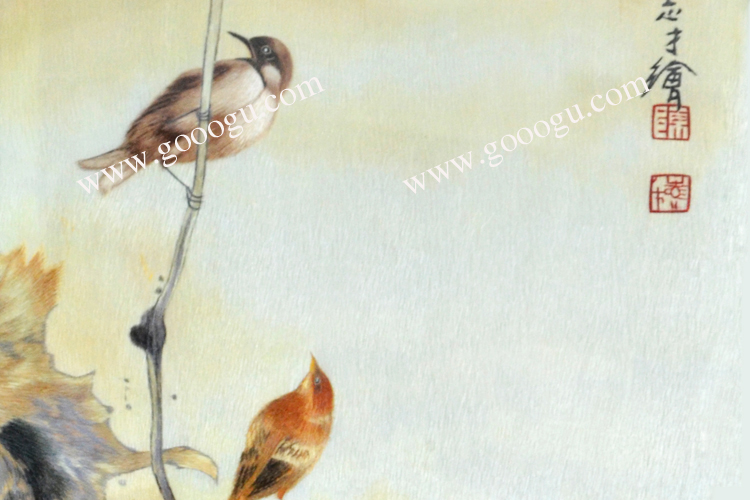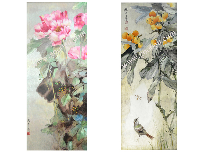 【產(chǎn)品名稱】:花鳥折疊屏風(fēng)---陳志才花鳥(雙面繡) (作品代碼:ZP-1002) 【產(chǎn)品規(guī)格】:圖案尺寸寬40CM每扇,高100CM每扇 外框整體尺寸寬65cm每扇,高205cm每扇 【產(chǎn)品工藝】:手工刺繡 【產(chǎn)品材質(zhì)】:真絲面料+純天然雞翅木框+桑蠶絲線+玻璃 【產(chǎn)品包裝】:木箱包裝,用海綿包扎,確保運輸安全 【出廠價】:54800元 【產(chǎn)品運輸】:我司負(fù)責(zé)發(fā)往客戶指定地點,蘇州附近城市可送貨上門! 【產(chǎn)品說明】:此款純天然雙面繡折疊屏風(fēng),采用進口的雞翅木為框架材料,做工精細(xì),整幅作品是由蘇州工藝師耗時數(shù)月手工刺繡而成,刺繡圖案繡工精細(xì),顏色搭配均勻,整體給人舒適,愜意之感,木雕細(xì)膩精美,是蘇繡屏風(fēng)中的經(jīng)典作品。是貴賓接待室或大廳的重要裝飾品之一!歡迎親臨嬌古蘇繡展示廳觀看實物! 【作品欣賞】 .jpg) 陳志才花鳥特寫 .jpg)