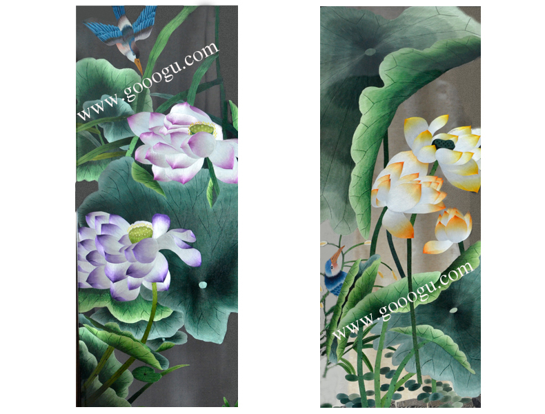 【產(chǎn)品名稱】:紅木蘇繡屏風(fēng)---荷花翠鳥(niǎo)(雙面繡) (作品代碼:ZP-1003) 【產(chǎn)品規(guī)格】:圖案尺寸寬35CM每扇,高90CM每扇 外框整體尺寸寬60cm每扇,高210cm每扇 【產(chǎn)品工藝】:手工刺繡 【產(chǎn)品材質(zhì)】:真絲面料+紅木框+桑蠶絲線+玻璃 【產(chǎn)品包裝】:木箱包裝,用海綿包扎,確保運(yùn)輸安全 【出廠價(jià)】:62800元 【產(chǎn)品運(yùn)輸】:我司負(fù)責(zé)發(fā)往客戶指定地點(diǎn),蘇州附近城市可送貨上門(mén)! 【產(chǎn)品說(shuō)明】:此款紅木雙面繡折疊屏風(fēng),是由蘇州工藝師耗時(shí)數(shù)個(gè)月精心手工刺繡而成,刺繡圖案繡工精細(xì),顏色搭配均勻,整體給人舒適,愜意之感,木雕細(xì)膩精美,是蘇繡屏風(fēng)中的經(jīng)典作品。是企事業(yè)大堂或大廳的重要裝飾品之一!歡迎親臨嬌古蘇繡展示廳觀看實(shí)物! 【作品欣賞】 .jpg) 高端的繡工令荷花彰顯獨(dú)特的魅力 .jpg)