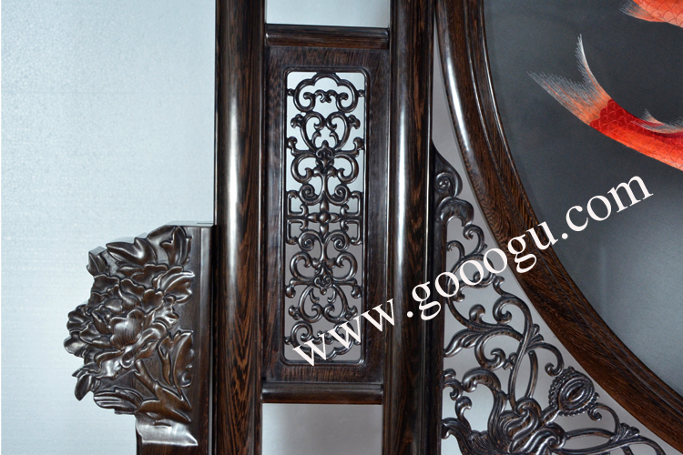 【產(chǎn)品名稱】:蘇繡蘇繡屏風---十二紅魚(雙面繡) (作品代碼:P-1066) 【產(chǎn)品規(guī)格】:圖案尺寸直徑為100cm的圓 外框整體尺寸寬175cm,高215cm 【產(chǎn)品工藝】:手工刺繡 【產(chǎn)品材質(zhì)】:真絲面料+雞翅木框+桑蠶絲線+玻璃 【產(chǎn)品包裝】:木箱包裝,用海綿包扎,確保運輸安全 【出廠價】:26000元 【產(chǎn)品運輸】:我司負責發(fā)往客戶指定地點,蘇州附近城市可送貨上門! 【產(chǎn)品說明】:此款雙面繡屏風,是由蘇州工藝師耗時數(shù)個月精心手工刺繡而成,刺繡圖案以中國傳統(tǒng)的魚為題材繡工精細,顏色搭配均勻過渡自然,整體給人舒適,愜意之感,屏風的框架選用進口的雞翅木為料,是蘇繡屏風中的經(jīng)典作品。是企事業(yè)大堂或大廳的重要裝飾品之一!歡迎親臨嬌古蘇繡展示廳觀看實物! 【作品欣賞】 .jpg)