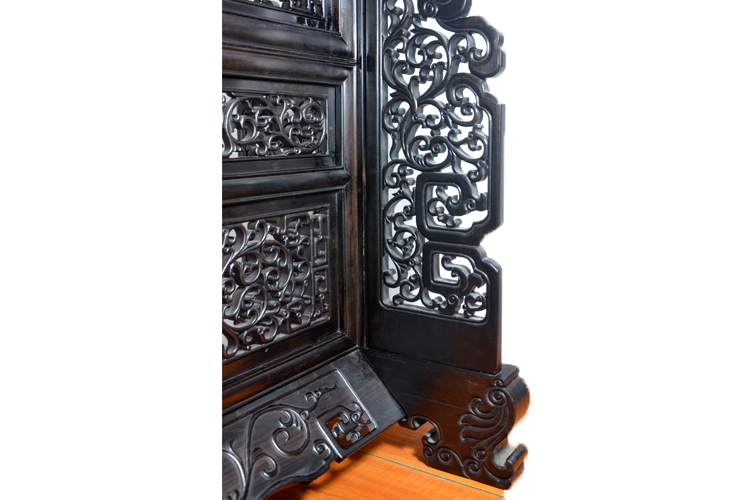 紫光檀木框架雕花精細(xì)、堪稱(chēng)手工藝品中的佳作 |