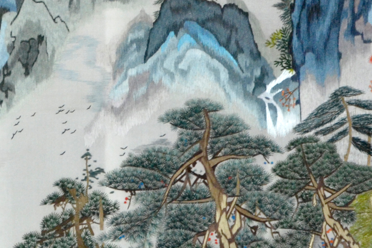 【產(chǎn)品名稱】:屏風(fēng)江山如此多嬌 (作品代碼:P-1089) 【產(chǎn)品規(guī)格】:圖案尺寸寬度120cm,高度70cm 外框整體尺寸寬180cm,高180cm 【產(chǎn)品工藝】:手工刺繡 【產(chǎn)品材質(zhì)】:真絲面料+雞翅木框+桑蠶絲線+玻璃 【產(chǎn)品包裝】:木箱包裝,用海綿包扎,確保運輸安全 【出廠價】:22000元 【產(chǎn)品運輸】:我司負(fù)責(zé)發(fā)往客戶指定地點,蘇州附近城市可送貨上門! 【產(chǎn)品說明】:此款雙面繡屏風(fēng),是由蘇州工藝師耗時數(shù)個月精心手工刺繡而成,刺繡圖案以國畫江山如此多嬌為題材繡工精細(xì),顏色搭配均勻過渡自然,整體給人舒適,愜意之感,屏風(fēng)的框架選用雞翅木為料,蘇繡屏風(fēng)是家用玄關(guān)或辦公玄關(guān)的重要裝飾物之一!歡迎親臨嬌古蘇繡展示廳觀看實物! 【作品欣賞】 .jpg)
