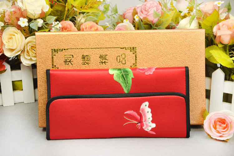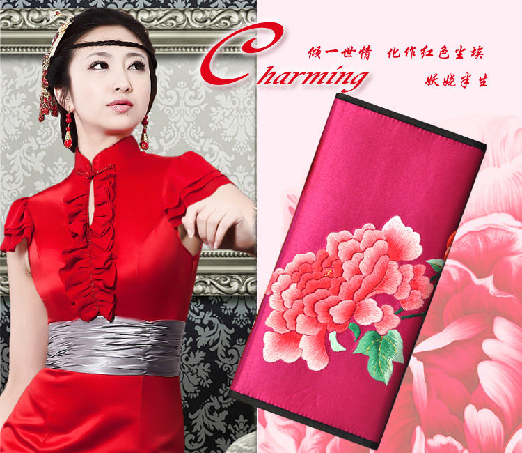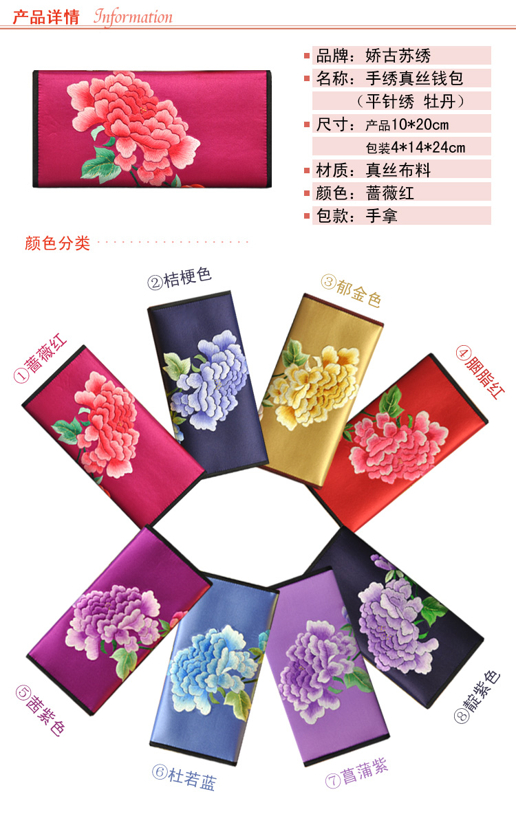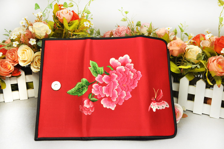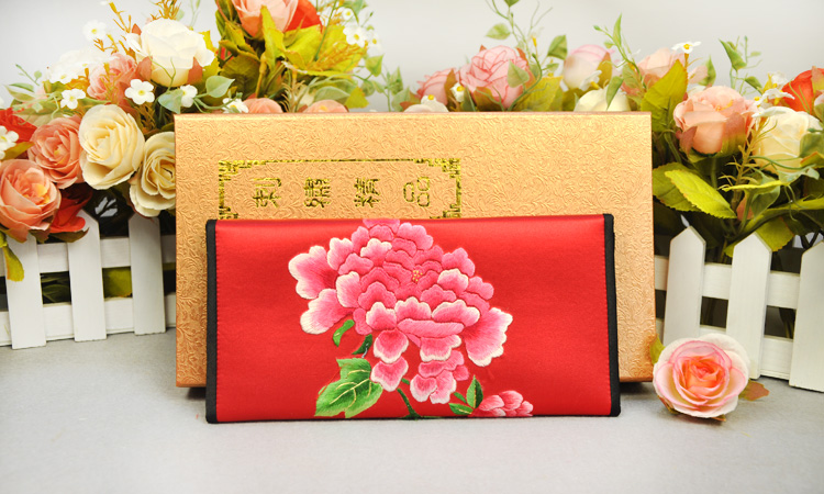平繡牡丹 純手工刺繡 蘇繡錢包 高檔特色禮品 送領(lǐng)導(dǎo)送外國人禮品