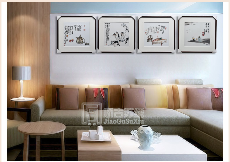 【品 牌】:嬌古 (作品代碼 D-1068) 【品 名】:中國元素裝飾畫(手工蘇繡) 【品 質(zhì)】:4-6絲刺繡 (蘇繡小知識:1根蘇繡絲線可分為16絲,中檔刺繡皆為10絲所繡,中高檔刺繡皆為6-8絲,高檔刺繡皆為4-6絲,精品刺繡皆為1-4絲) 【尺 寸】:畫心尺寸50*50cm 整體尺寸75*75cm 【產(chǎn)品工藝】:手工刺繡+真絲底料 【絲線材質(zhì)】:蠶絲線 【用 途】:政府禮品、個人收藏、外賓禮品、生日禮物、賀壽禮品、領(lǐng)導(dǎo)升遷、出國禮品等等。 【出廠價格】:3000元/幅